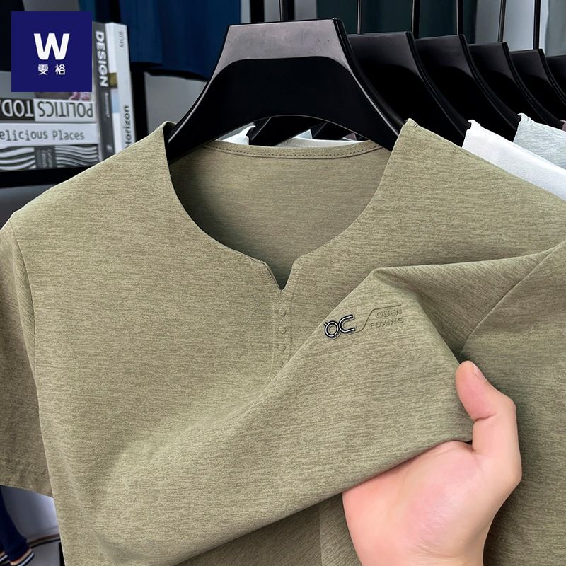 Summer 2025 Men's cool silk Cotton short-sleeved T-shirt