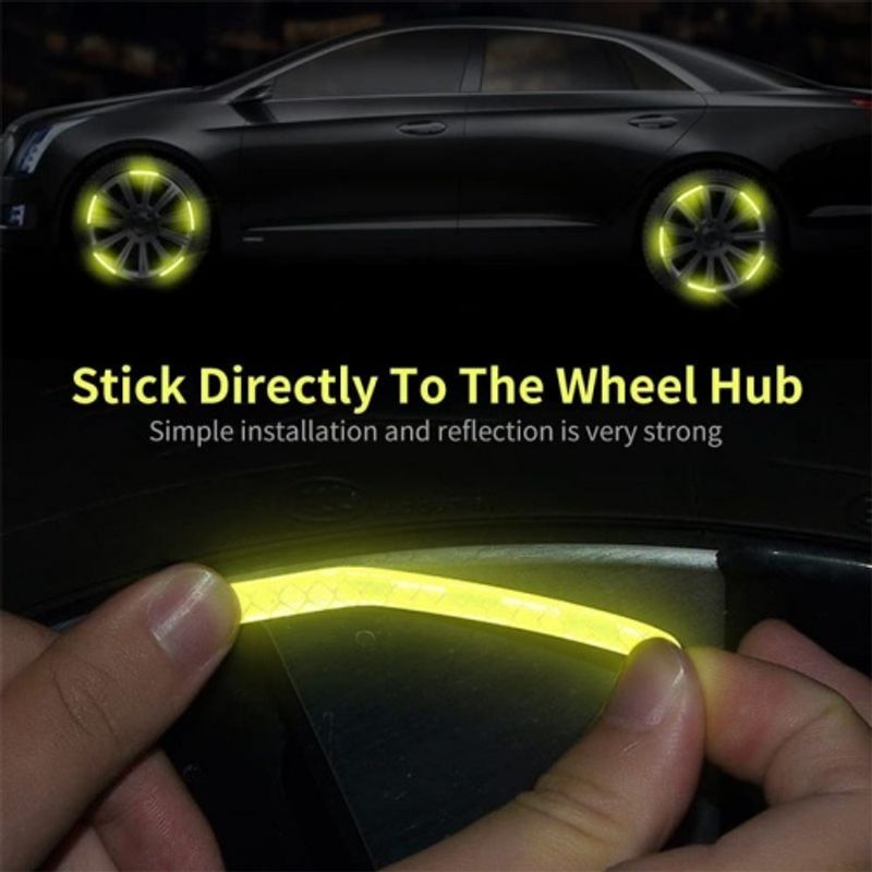 Cool visual effect: When driving at night, the wheel reflective sticker will form a cool halo effect, improve vehicle recognition and return rate.