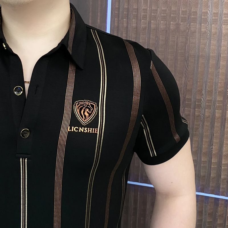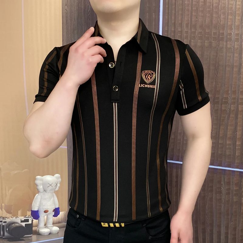 Men's POLO shirt, short-sleeved summer new style, striped, versatile, fashionable business casual, lapel-collar short-sleeved T-shirt for men