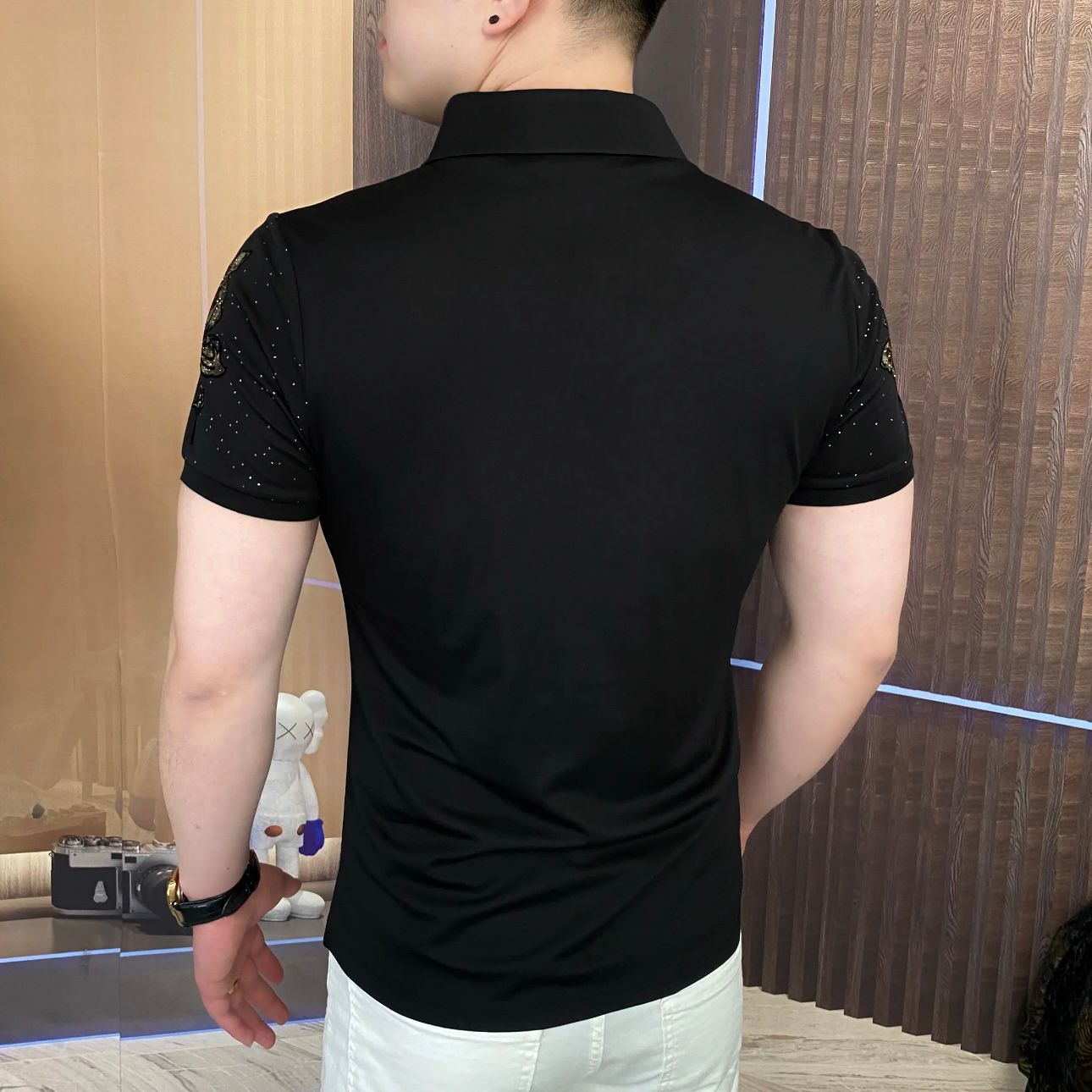 The neckline adopts reflective stitching from German Amann