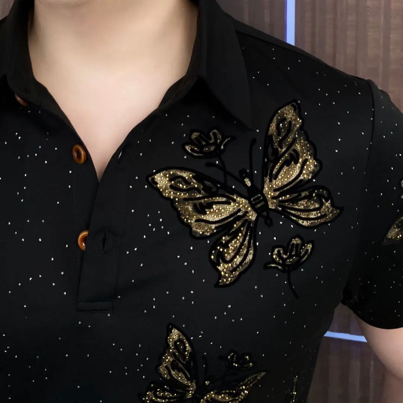 🦋 Haute Couture Embroidery: A moving work of art with 800 Austrian crystals set by hand using the 3D butterfly hot diamond technique. The wings show a iridescent effect as the light flows